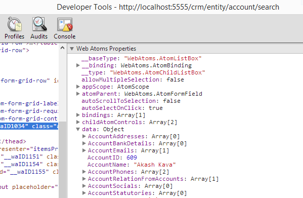 You can inspect Atom Properties associated with DOM element with this Chrome Extension.